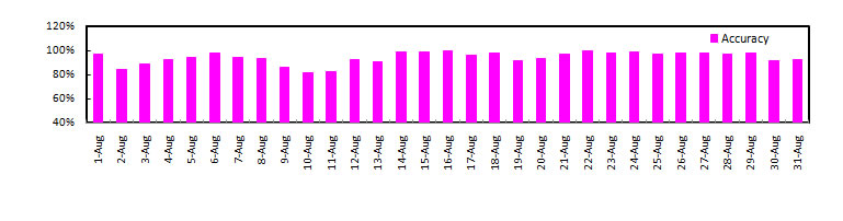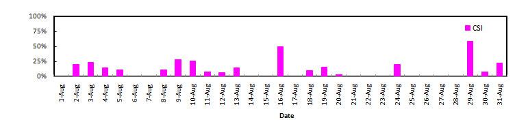 Max 1-hr Ozone of August, 2010 , Threshold = 80 ppb (Exceedance = 120 ppb)