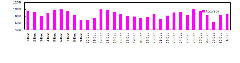 24-hr Avg. PM2.5 of December, 2010 , Threshold = 15 ug m-3 (Exceedance = 35 ug m-3)