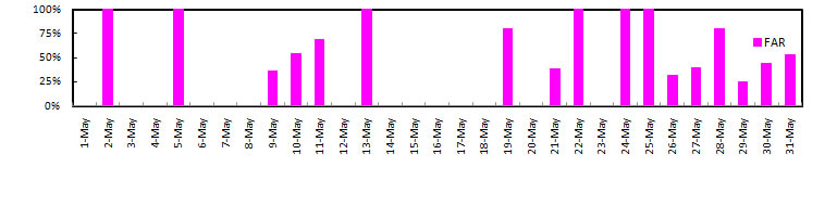 Max 8-hr Ozone of May, 2011, Threshold = 60 ppb (Exceedance = 75 ppb)