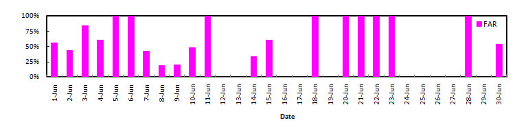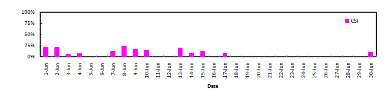 Max 1-hr Ozone of June, 2011 , Threshold = 80 ppb (Exceedance = 120 ppb)