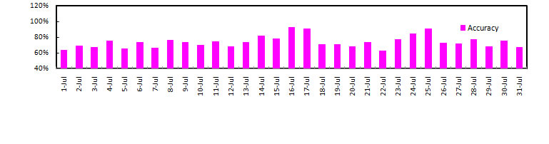 Max 8-hr Ozone of July, 2011, Threshold = 60 ppb (Exceedance = 75 ppb)