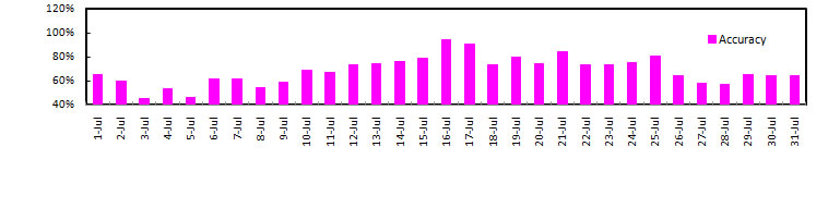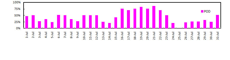 24-hr Avg. PM2.5 of July, 2011 , Threshold = 15 ug m-3 (Exceedance = 35 ug m-3)