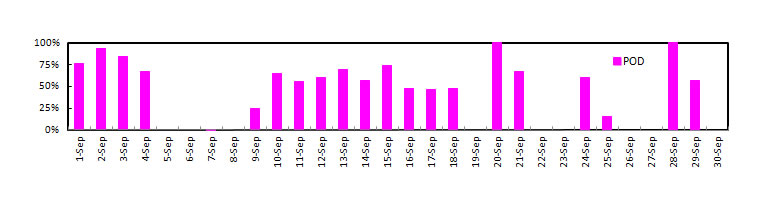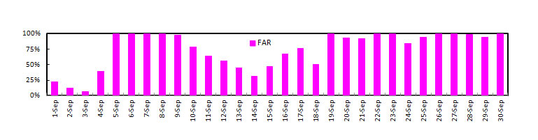 24-hr Avg. PM2.5 of September, 2011 , Threshold = 15 ug m-3 (Exceedance = 35 ug m-3)