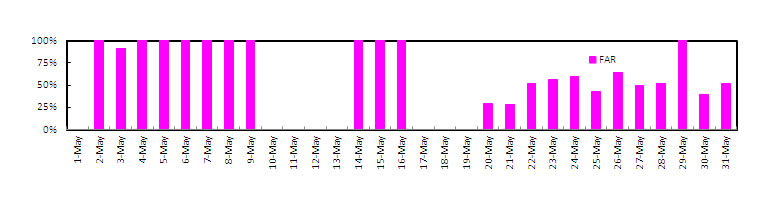 Max 8-hr Ozone of May, 2012, Threshold = 60 ppb (Exceedance = 75 ppb)