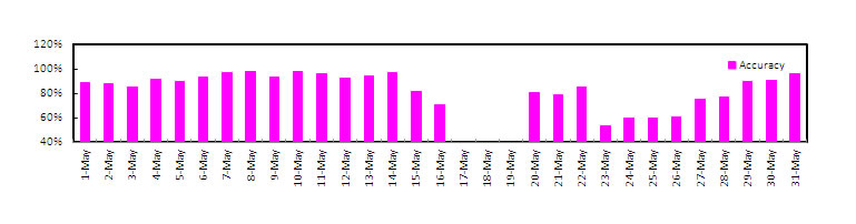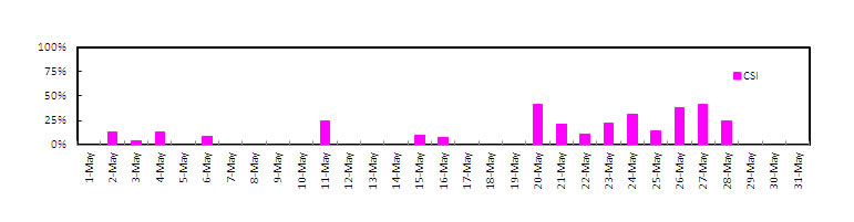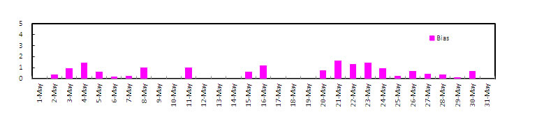 24-hr Avg. PM2.5 of May, 2012, Threshold = 15 ug m-3 (Exceedance = 35 ug m-3)