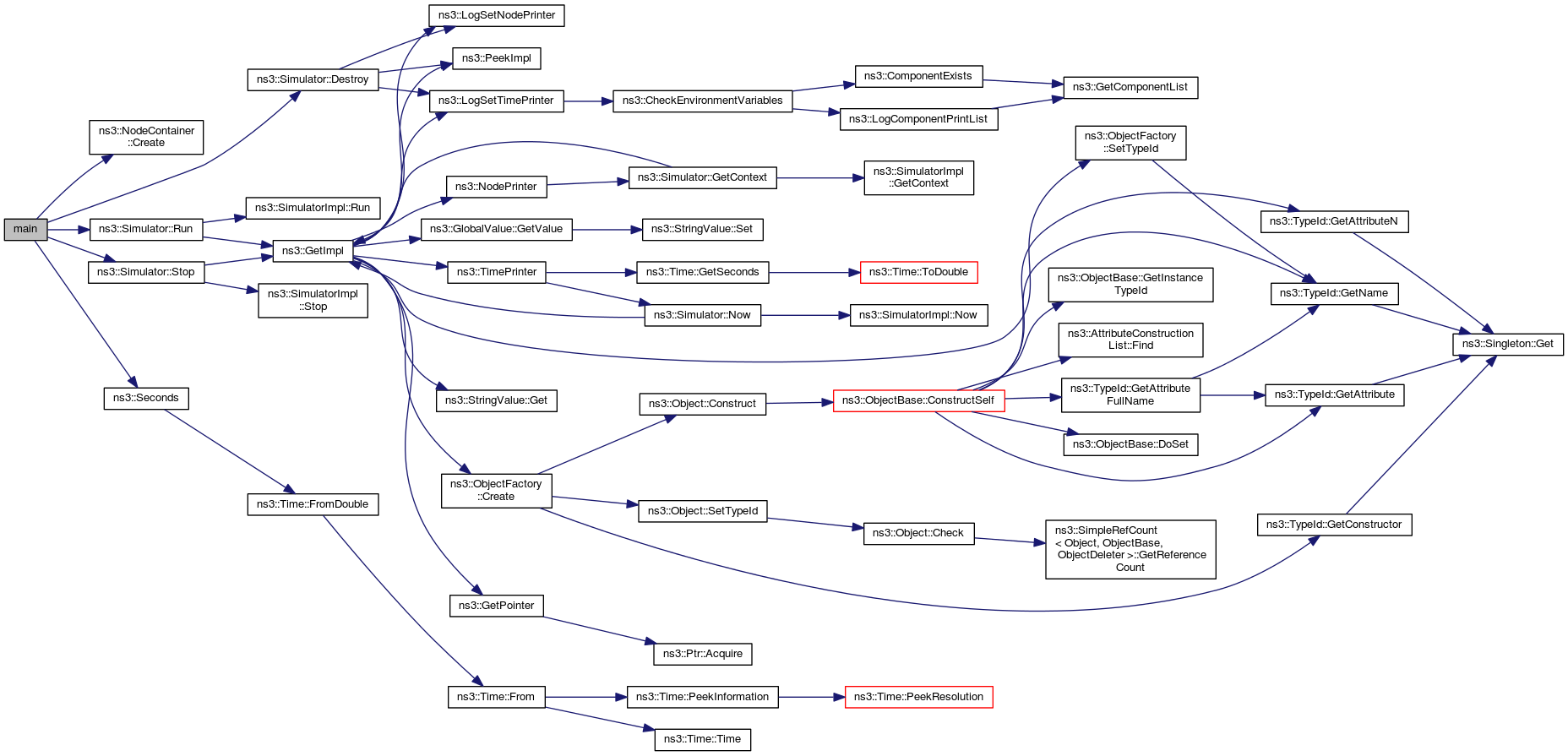 References ns3::NodeContainer::Create(), ns3::Simulator::Destroy(), NS_FATAL_ERROR, NS_LOG_INFO, ns3::Simulator::Run(), ns3::Seconds(), and ns3::Simulator::Stop().