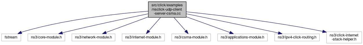 NS_LOG_COMPONENT_DEFINE ("NsclickUdpClientServerCsma") | |