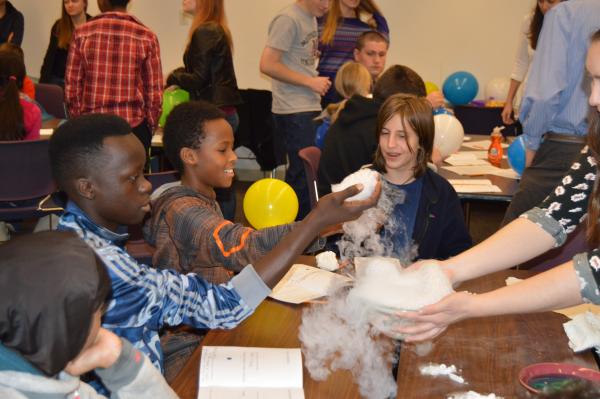 The AIChE student chapter hosted the Fall 2015 Summer STEM Program (NUSSP) callback where students rotated between 6 stations learning about scientific concepts.