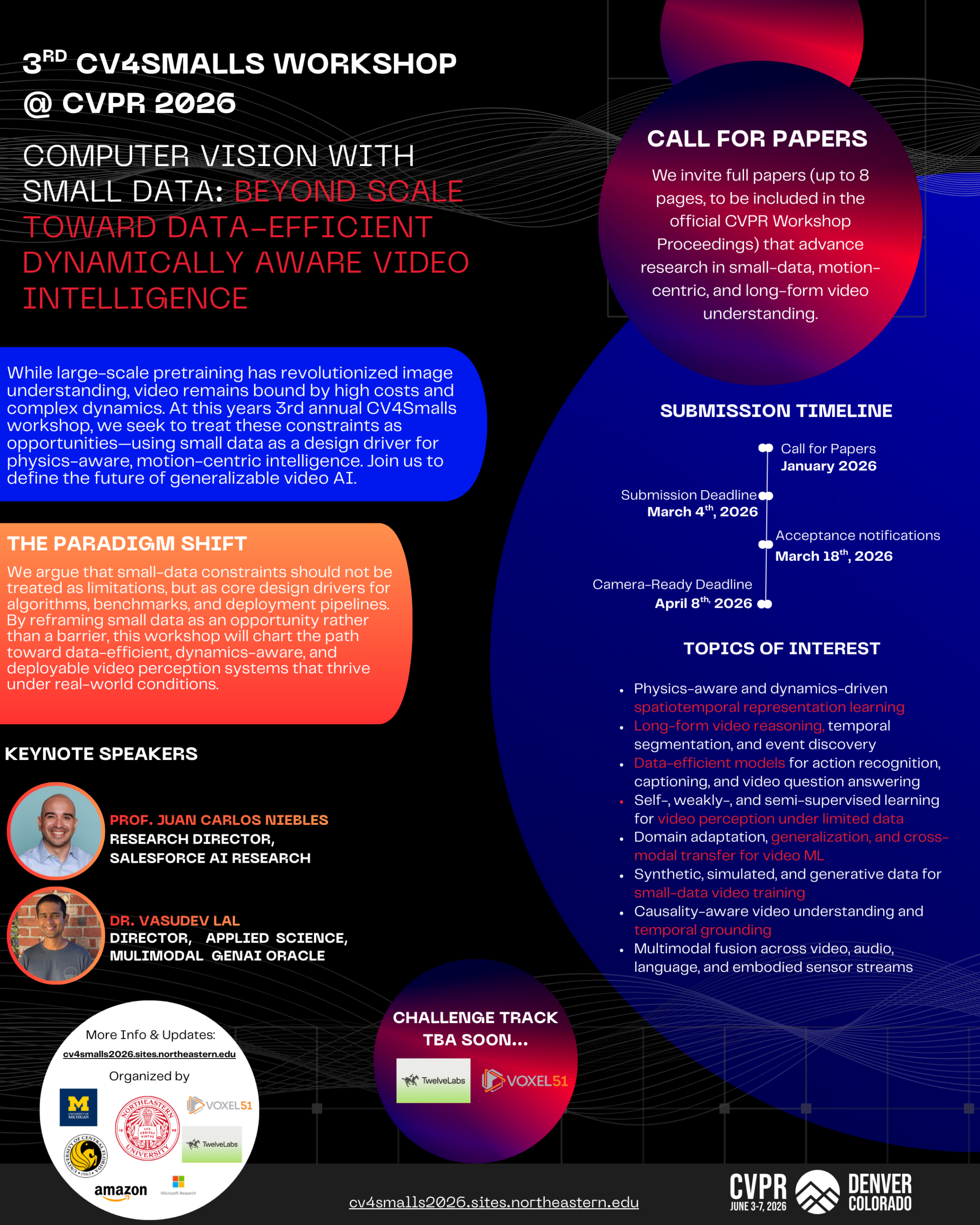 While foundation models keep scaling, many real-world domains still face scarce, costly, and complex data. That’s why we’re excited to bring the 3rd CV4Smalls Workshop to CVPR 2026 with a new theme: