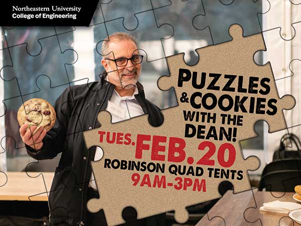 Drop by throughout the day with your fellow COE friends to put together custom puzzles for each engineering department, while enjoying free cookies, snacks, and swag! Meet and talk to Dean Gregory Abowd who will join the fun starting at 1:30 p.m.! How far can you get on the puzzles?