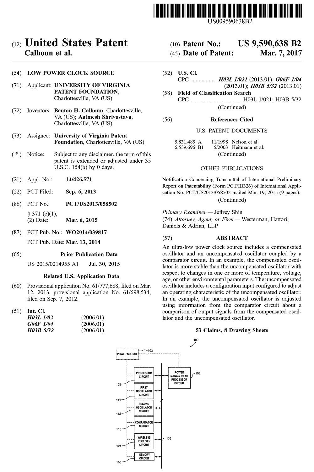 ECE Assistant Professor Aatmesh Shrivastava was awarded a patent for “Low voltage crystal oscillator (XTAL) driver with feedback controlled duty cycling for ultra low power.” Abstract Source: USPTO A low […]