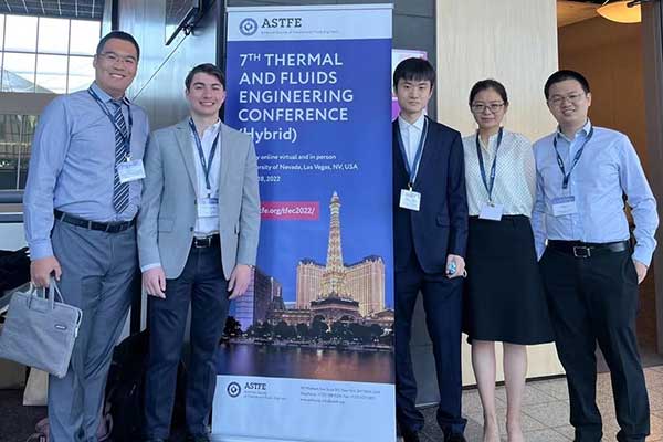 MIE Associate Professor Yi Zheng’s research group (Nano Energy Laboratory) attended the American Society of Thermal and Fluids Engineers (ASTFE) 7th annual Thermal and Fluids Engineering Conference to present topics ranging from ocean biomass-based energy functional material to photonic metamaterial to magnetic manipulation of nanoscale thermal transport.