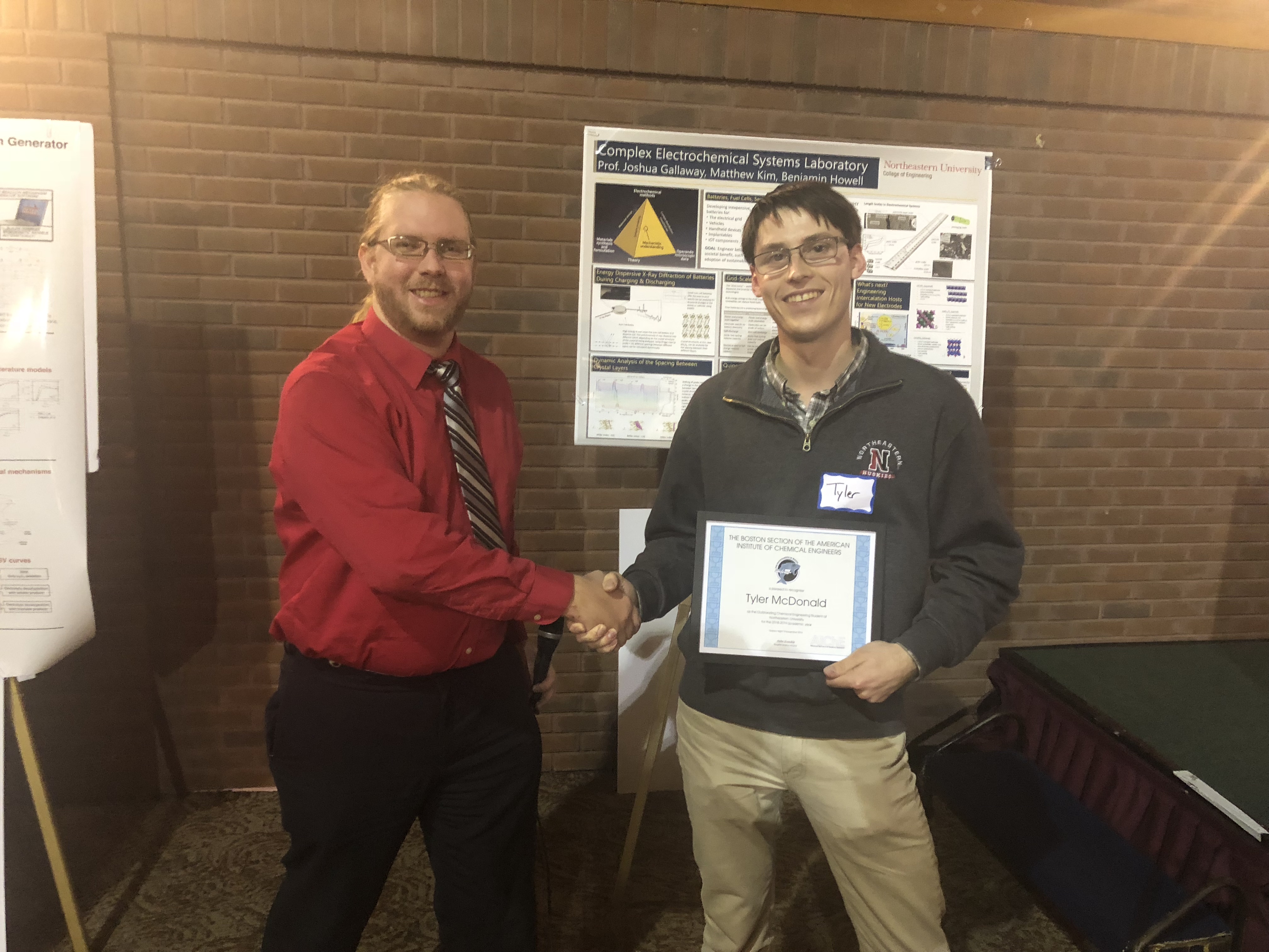 AIChE-Boston recognized ChE undergraduate student Tyler McDonald, as the Outstanding Chemical Engineering Student for Northeastern University, for the 2018-2019 academic year.