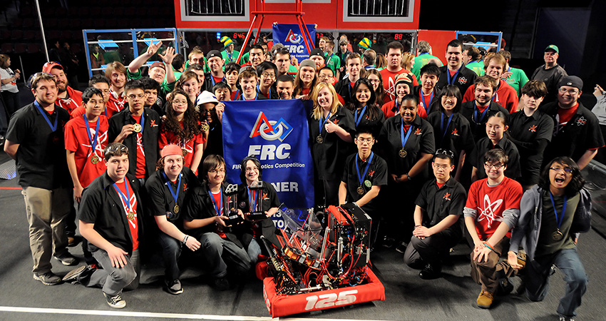 The NUTRONS, Northeastern’s FIRST Robotics team, won the 2012 New York City Regional FIRST Robotics Competition with help from their alliance teams.