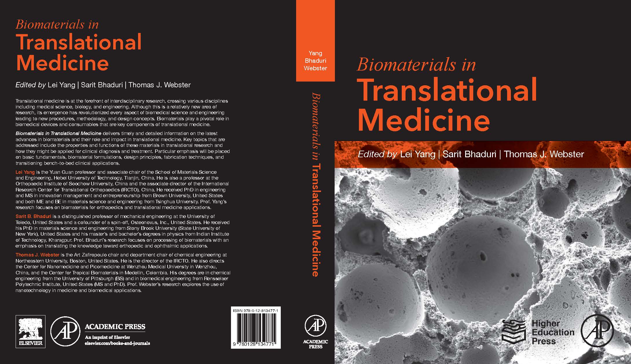 Chemical Engineering Professor and Department Chair Tom Webster has helped create yet another exciting new book! Biomaterials in Translational Medicine was edited by Professor Webster, Professor Lei Yang, and Professor Sarit Bhaduri.