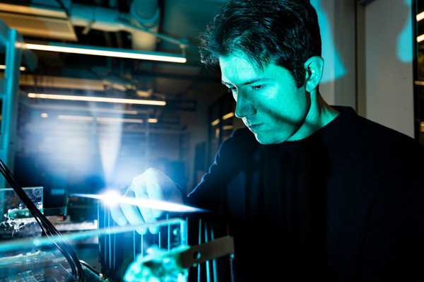 Northeastern electrical and computer engineering professor Francesco Restuccia works in his lab in EXP on the Boston campus. Photo by Alyssa Stone/Northeastern University