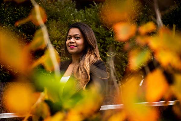 Main photo: Ravalika Kurumilla, who studies data analytics engineering, is currently on co-op at Ancestry.com. Photo by Matthew Modoono/Northeastern University