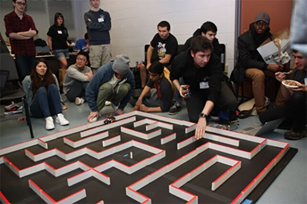 The IEEE student chapter of Northeastern University sponsored a team of motivated students to travel and participate in the IEEE Region I Collegiate Micromouse Competition on April 16th and 17th. This was Northeastern's first time competing so the competition was fierce for our newcomers. Due to the hard work and devotion of our micromouse team (Charles Ziegler, William Kalfus, Kenneth Afriyie, Sourabh Marathe, Justin Xia, and Matthew Murphy), Northeastern placed 6th out of 19 colleges! They even beat teams that were iterating from years before! This truly was a magnificent feat. For next year's competition, they plan on designing their own PCB using the knowledge they have obtained from this year in order to avoid the MANY hiccups they previously encountered. If you want to get involved in next years competition just reach out to ziegler.c@husky.neu.edu and kalfus.w@husky.neu.edu. It is super exciting, you make good friends, and you will learn a lot about robotics.
