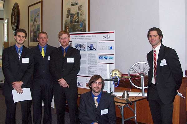 Morgan Misek’s team of Northeastern cyclers and classmate engineers who built the gearbox as their capstone project (L-R: Jay Seiter, Michael Witonis, Morgan Misek, Jesse Kuhn, and Josh Filgate)