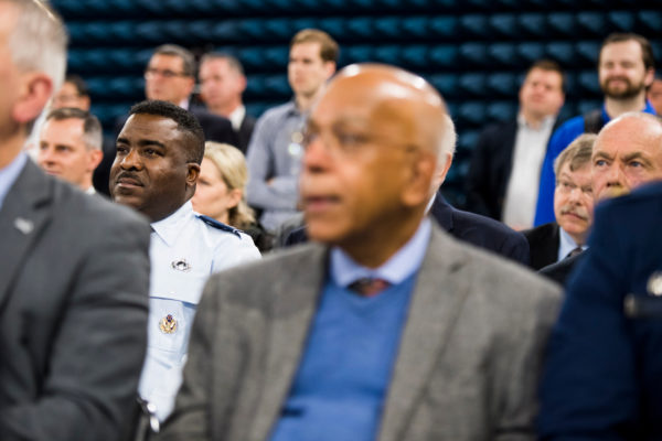 “This is the future,” Colonel Timothy Lawrence, director of the Information Directorate at the Air Force Research Laboratory, told the ceremony audience. “Right now, counter-UAS is a huge problem … having Northeastern—with this facility—work this problem is what the nation needs.”