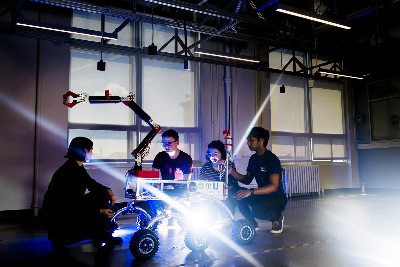 “The rovers that are on Mars now are very isolated and aren’t working with astronauts,” says Tom Degen, a fourth-year mechanical engineering student who is the team lead on the rover project. “We’re trying to figure out, once we have astronauts there, how rovers can best interact with them.”