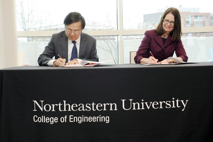 Aubry and Wenzhou Medical University President Qu Jia formally established the partnership at a ceremony at Northeastern on Monday, when they signed a memorandum of understanding. Thomas Webster, the Art Zafiropoulo Chair and professor and chair of the Department of Chemical Engineering, will lead Northeastern’s research team as part of this initiative.