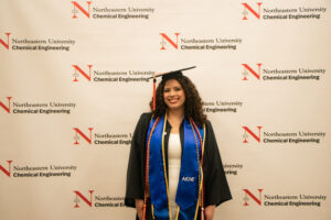 As an undergrad, Serrano was a part of the student organization, American Institute of Chemical Engineers (AIChE). She held an e-board position as the ChemE Sports Co-lead and led weekly meetings. The ChemE Sports section of the club deals with working in a chemical plant simulation, and the group is tasked with solving various problems that could occur in a plant. Serrano was able to mentor other students and assist with problem-solving while leading her team. The team competed in San Diego at a national conference and ended up winning first place regionally for the Northeast. Serrano said this was a memorable part of her Northeastern experience and was thrilled all of her team’s hard work was recognized at the conference.