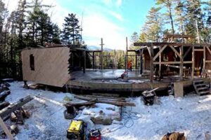 Although the permitting process took longer than anticipated, Northeastern students and alumni finally began construction of the new lodge last summer. Courtesy photo