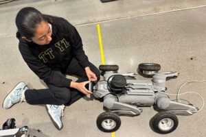 Shalini working on a robot in the Field Robotics Lab. Courtesy Photo.