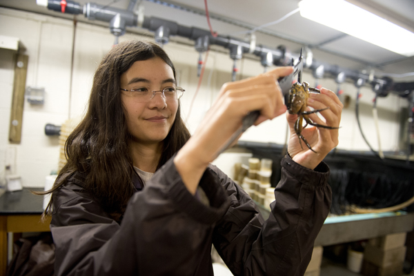 Rogers is interested in a different marine species—the Atlantic blue crab. As a member of environmental sciences assistant professor David Kimbro’s lab, she is researching the ecological consequences of an expanding blue crab habitat in coastal New England. The blue crab is an important predator in a region whose northern range currently stops at Cape Cod. But as temperatures rise, the blue crab’s range is expected to expand as far north as the Gulf of Maine. Rogers will investigate what this expansion will mean both for the blue crab as well as the region’s other species, such as the invasive European green crab.