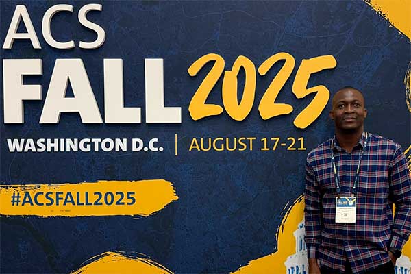 Chemical engineering student Lawrence Ajayi, PhD’28, received the Certificate of Merit (CoM) from the American Chemical Society’s (ACS) Division of Environmental Chemistry (ENVR) for his research on “Effect of alkali-treatment on microwave-assisted rare earth elements extraction from coal mine tailings,” which he presented at the ACS Fall 2025 National Meeting. Ajayi’s co-authors were ChE Assistant Teaching Professor Brian Lejeune, COS Research Professor Jason Guo, and ChE/COS Assistant Professor Damilola Daramola.