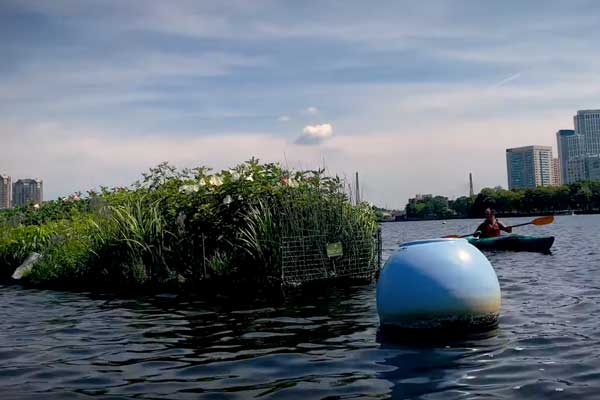 Max Rome, PhD’21, civil engineering, is leading a team of Northeastern researchers to create a visually impactful floating wetland on the Charles River to serve as a model to support water ecosystems, including combating algae blooms. His team recently received a grant for their work as a winner of Sasaki Foundation Design Awards.