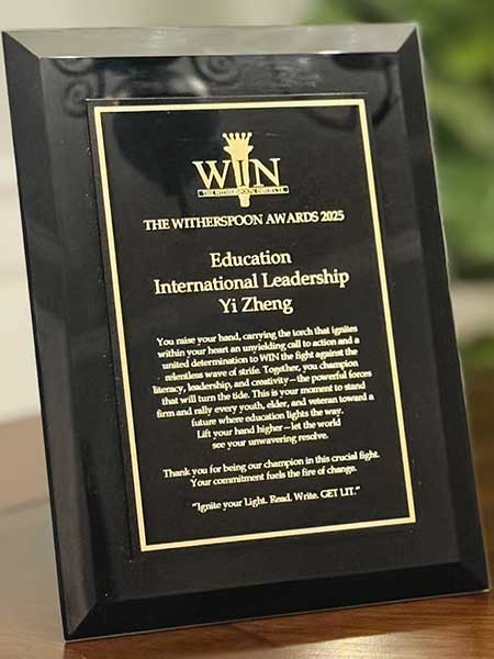 Zheng Receives International Education Leadership Award from The Witherspoon Institute