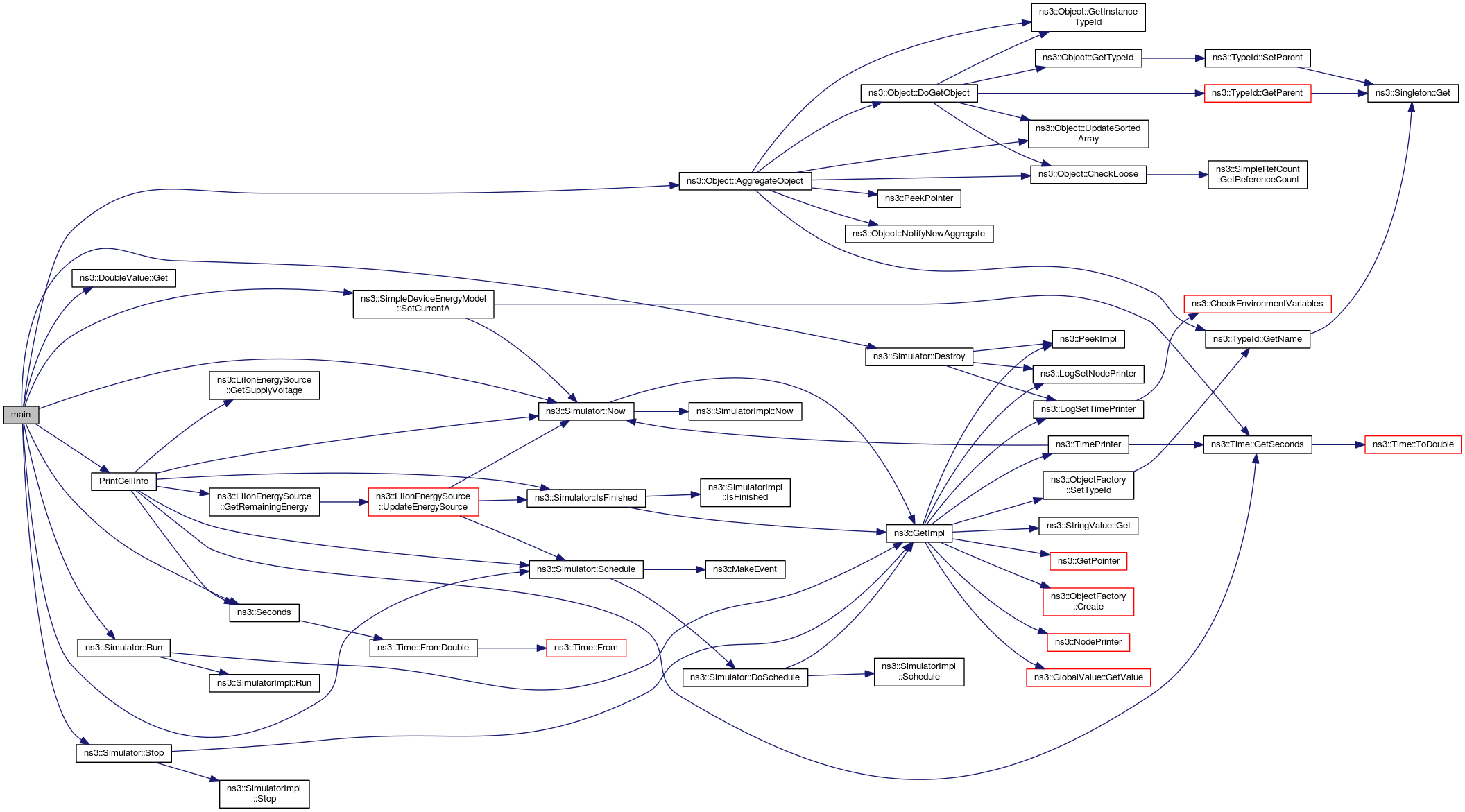 References ns3::Object::AggregateObject(), ns3::Simulator::Destroy(), ns3::DoubleValue::Get(), ns3::Simulator::Now(), NS_ASSERT, PrintCellInfo(), ns3::Simulator::Run(), ns3::Simulator::Schedule(), ns3::Seconds(), ns3::SimpleDeviceEnergyModel::SetCurrentA(), and ns3::Simulator::Stop().