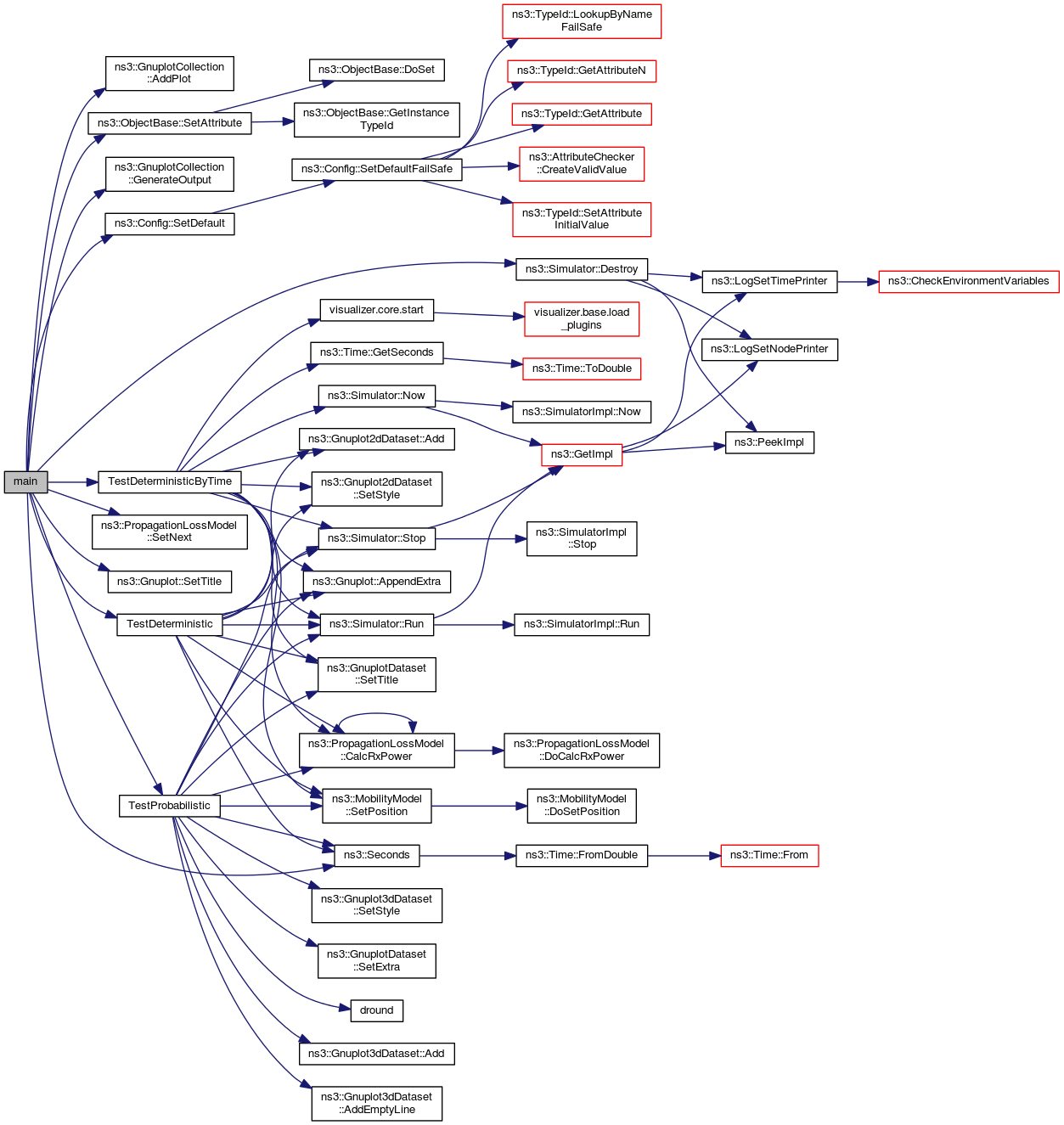 References ns3::GnuplotCollection::AddPlot(), ns3::Simulator::Destroy(), ns3::GnuplotCollection::GenerateOutput(), ns3::Seconds(), ns3::ObjectBase::SetAttribute(), ns3::Config::SetDefault(), ns3::PropagationLossModel::SetNext(), ns3::Gnuplot::SetTitle(), TestDeterministic(), TestDeterministicByTime(), and TestProbabilistic().