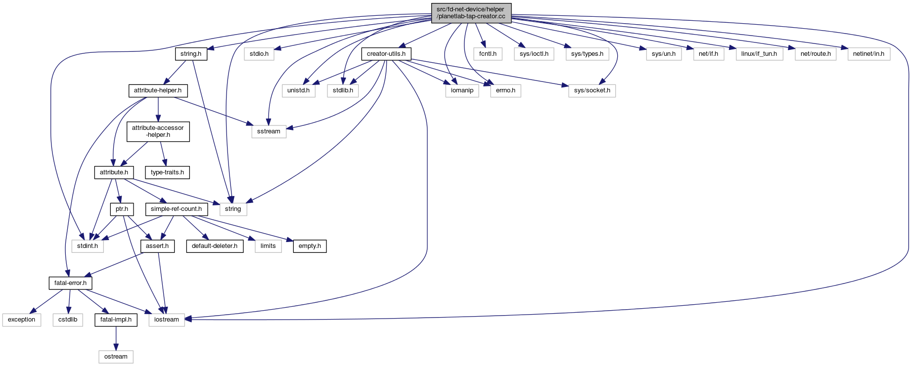 Include dependency graph for planetlab-tap-creator.cc:Go to the source code of this file.